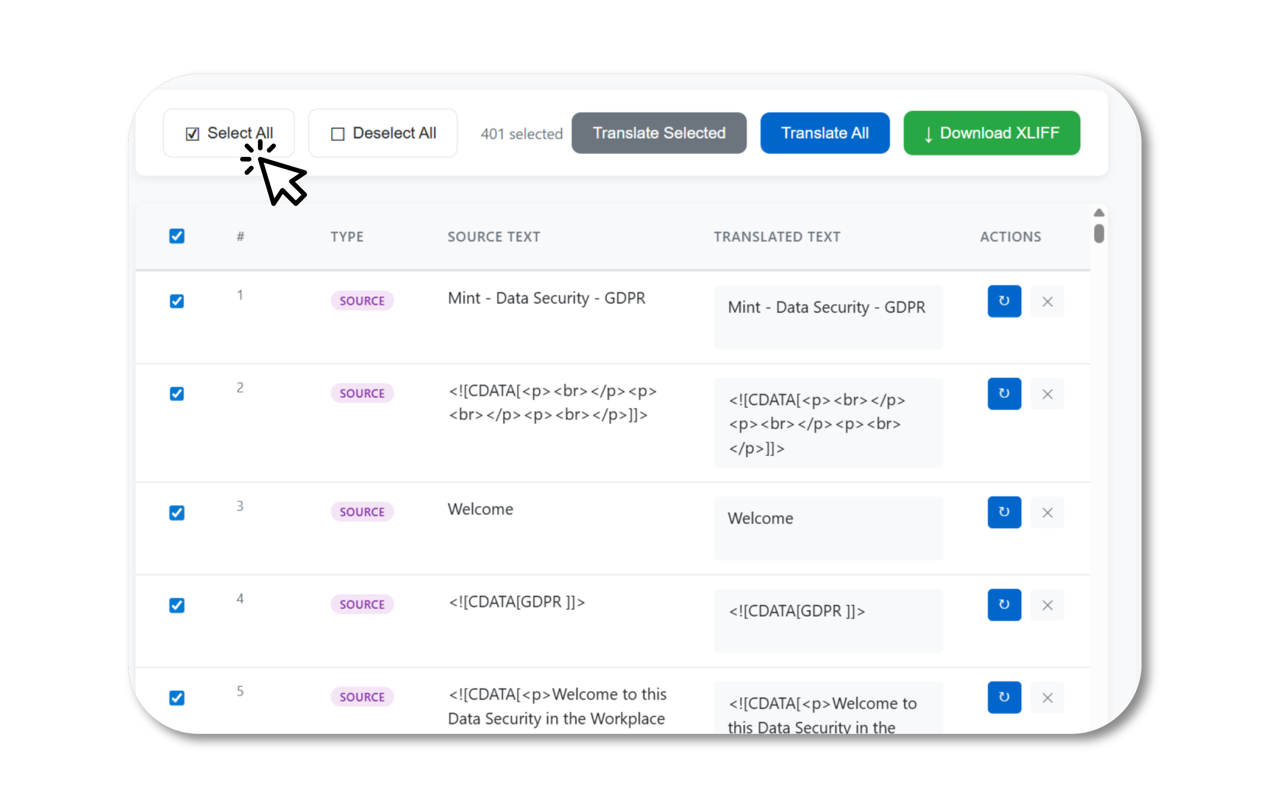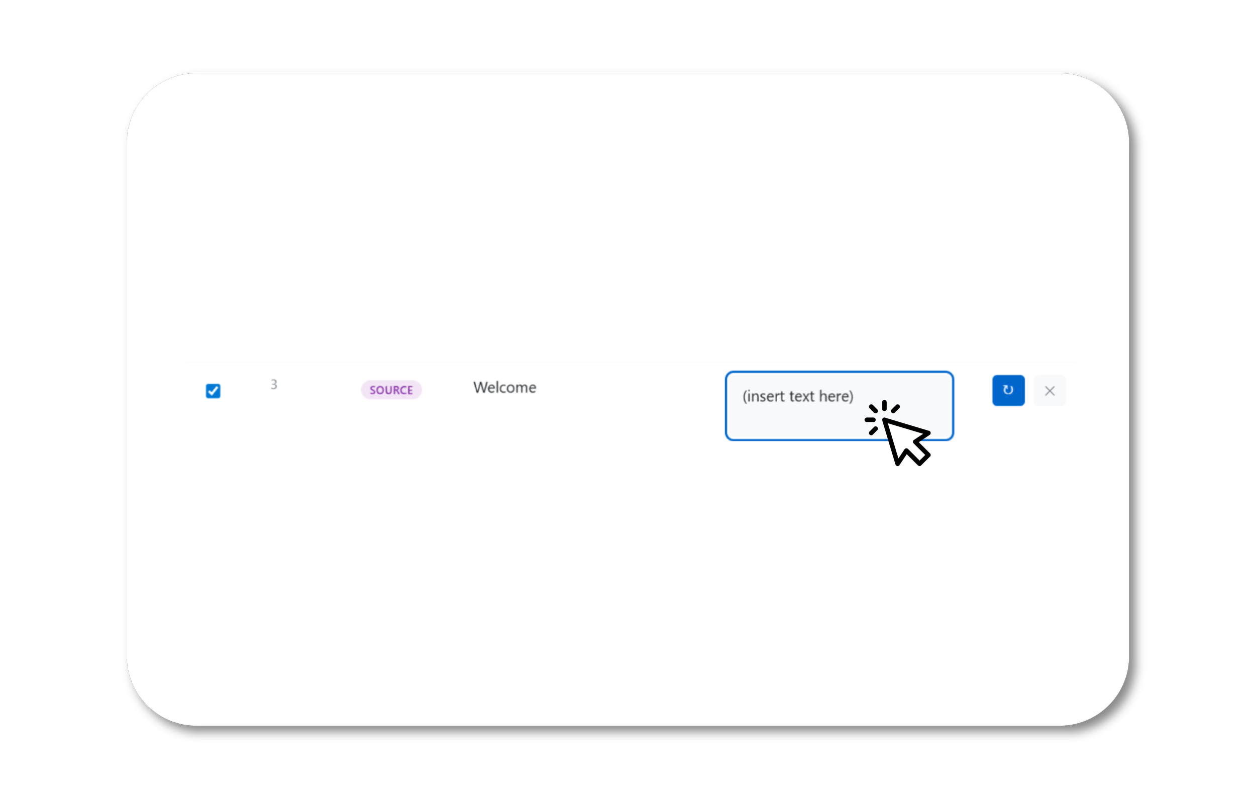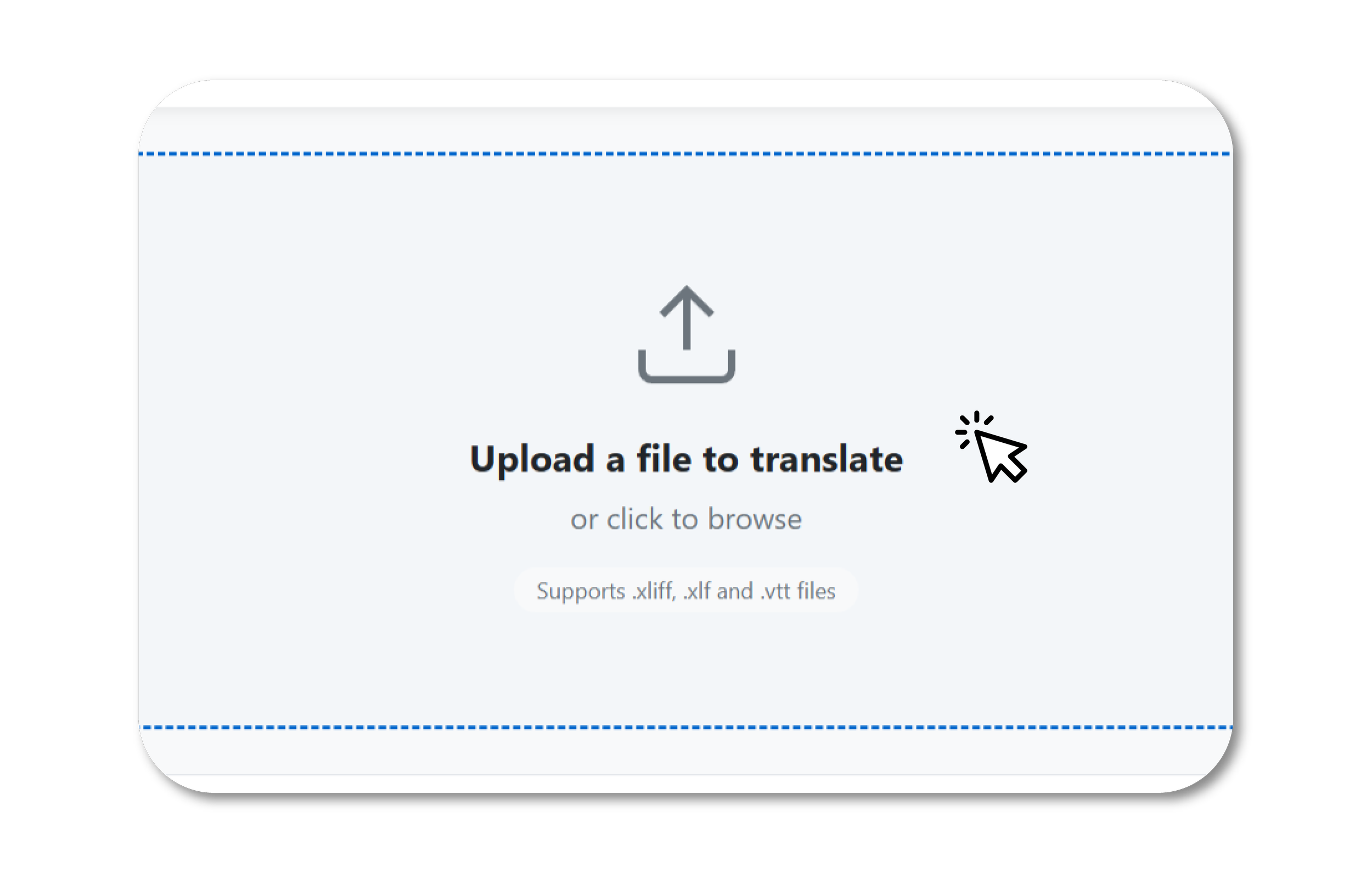 Create AI-powered translations from XLIFF and VTT files, with the option to review and refine before export.